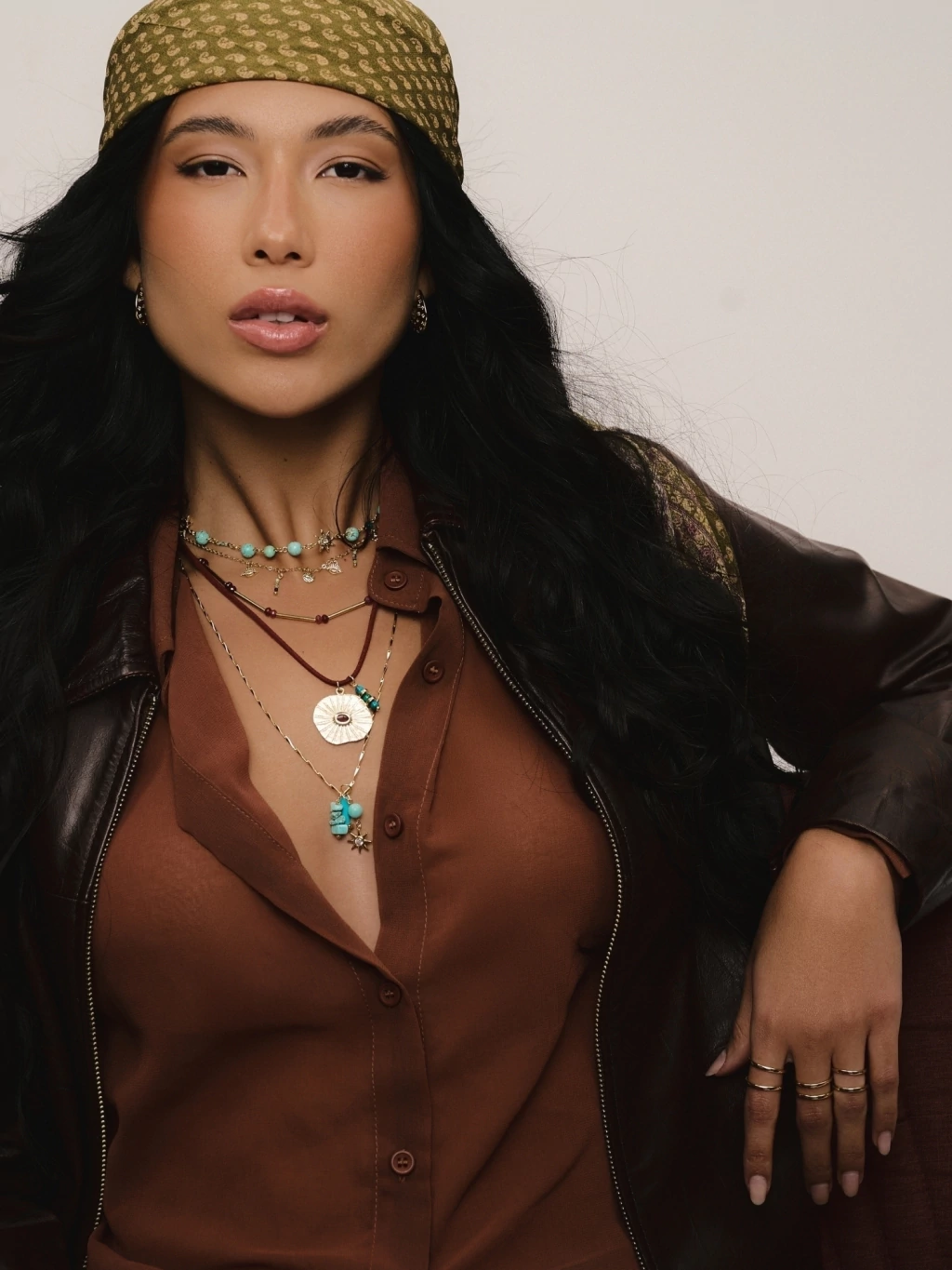★ Corrente: 40 cm + 5 cm | Pingentes: Pedras 1,1cm; Medalha 0,6cm; Olho 0,8cm