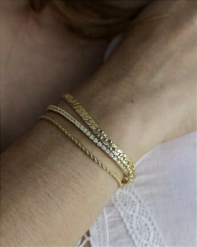 As rivieras possuem a qualidade de um acabamento de joalheria e compõem perfeitamente bem looks despojados ou sofisticados. A sua estrutura ajuda a manter a peça bem posicionada com as pedras para frente e sem virar. Além disso, possui um fecho de encaixe com reforços laterais que garantem segurança e conforto.